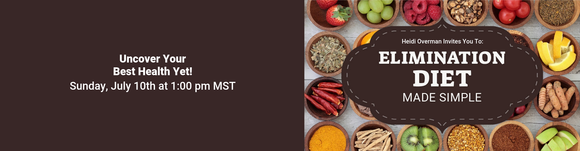 My goal is to share with you how the Elimination Diet can improve your quality of life which is why I invite you to attend my next event, Elimination Diet Made Simple - Do you want to jumpstart your Health? on Sunday, July 10th at 1:00 pm MST at MEND Massage, Facials and Wellness.